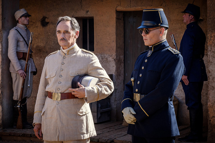 Что еще? Визуально фильм откровенно радует глаз. Пустынные пейзажи - мое почтение, очень и очень красивы. Городок также выглядит недурственно, да и костюмы с реквизитом подобраны основательно. Единственное что, раз речь идет о выдуманном мире, то как-то этот факт надо было сильнее подчеркнуть именно формой, оружием и всем остальным в придачу. В "В ожидании..." разве что флаги отличались от реальных, но это как раз не помогало. Так что визуальный ряд слишком уж походил на колониальную границу Франции, а когда выяснилось, что это совсем не так, то факт сей слегка сбивал с толку. Экшна в фильме не было, но он и не предполагался, зато жестокости с натурализмом было сколько угодно. И это тоже надо иметь в виду: зрелище явно не для детских глаз, но оно себя так и не позиционирует, впрочем.